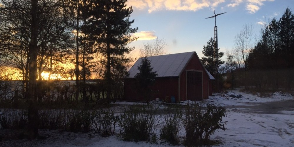The North wind doth blow (though not very hard). Our windmill acts like a weathervane even when it’s not turning and it is facing resolutely north. We shall have snow.
