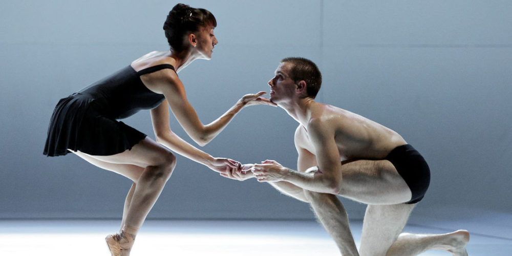 My laptop screen inveigles me on to the stage, into the streamlined white set, right up to the dancers – Christopher Harrison, Constant Vigier, Sophie Martin – chests heaving, bodies glistening with sweat, faces alternately expressive and expressionless.