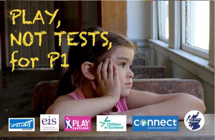 Themedia focus kicked off last summer, with stories about five-year-old children reduced to tears and an obscure question about a humming bird’s beak (media commentators couldn’t decide whether to treat these as tragedy or farce). Then came a concerted campaign against the P1 SNSA supported by the EIS, Children in Scotland, a parent-teacher organisation (Connect) and other groups concerned with children’s ‘right to play’. The slogan ‘Play Not Tests 4 P1’ began to appear, scrawled in chalk beside various Scottish landmarks.