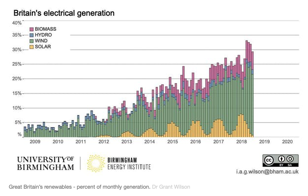Overall, 2018 saw steady progress for low carbon generation, including record months for wind, biomass and, mid-heatwave, solar: