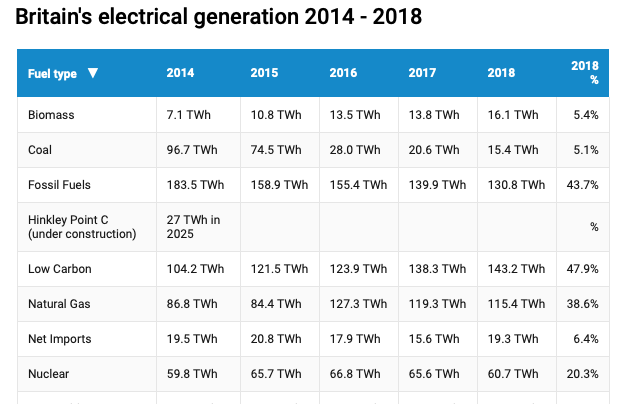 In 2018, Britain was coal-free for a record 1,898 hours – that’s up from just 200 hours in 2016. Coal generation fell for the sixth year in a row, and the country now has substantial periods without coal power (the longest stretch was just over three days straight).